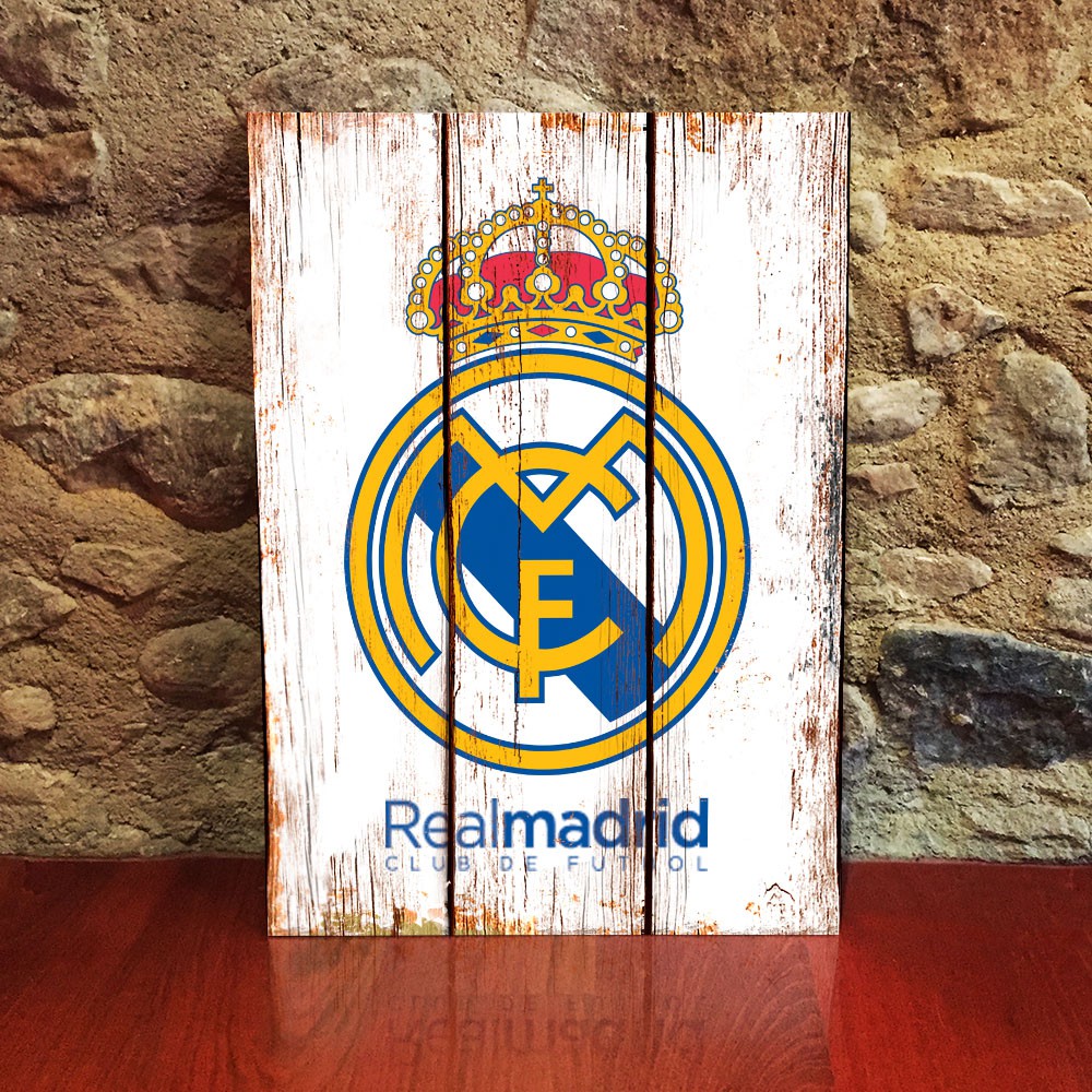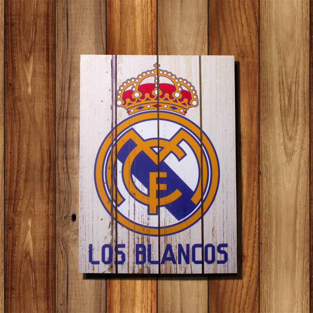 Real Madrid Club Sepakbola Poster Kayu Dekorasi Pajangan Dinding